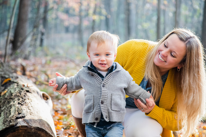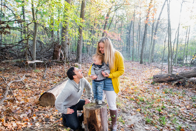 It was the perfect fall morning, the leaves had just started to turn bright orange and red and the lighting was crisp and absolutely perfect. This location was really special to the family because it is their plot of land and for a photographer it is an absolute dream. I could not have asked for a better setting! The property was very versatile, with a beautiful pond and big open field right next to it. And on the other side of the property there was a forest section with a perfect path filled with yellow, orange and red leaves.